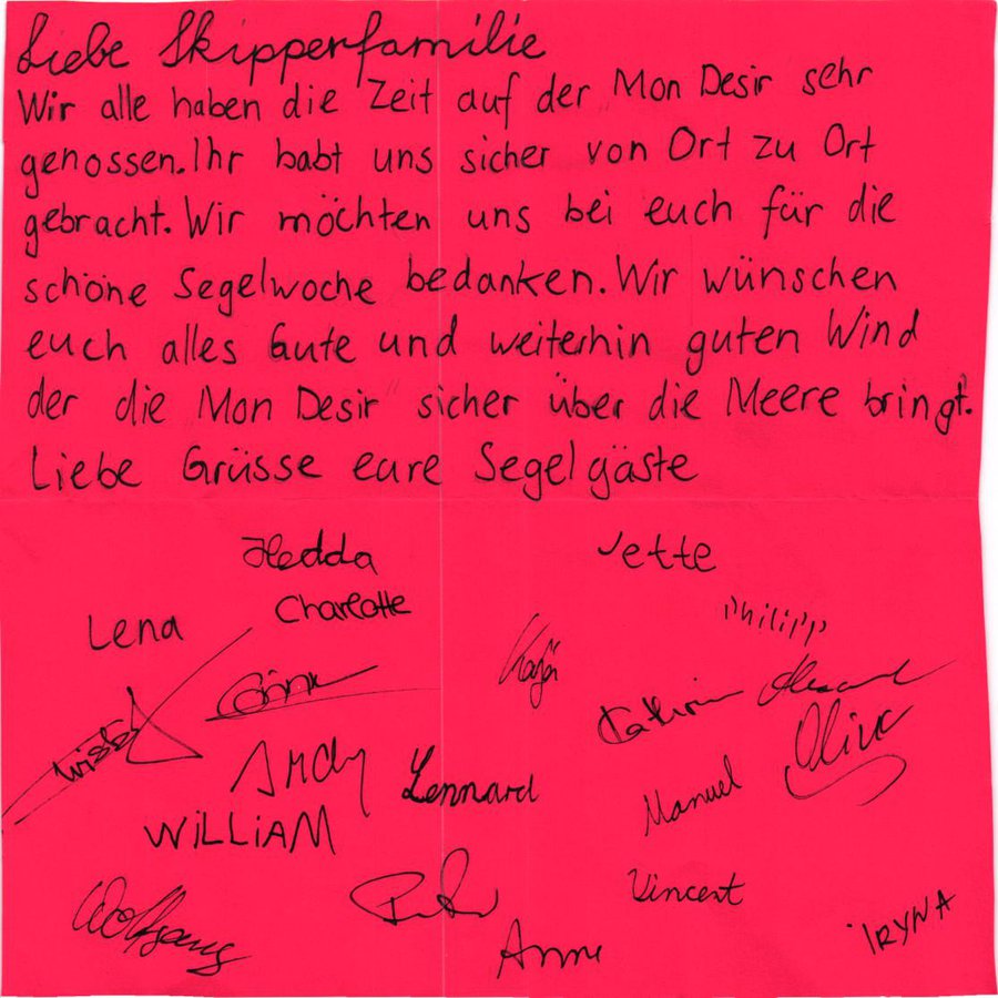 Wir wünschen der Skipperfamilie um Sebastiaan und Anneleen mit den Kids, sowie dem Anja alles Gute und sind sicher, dass wir uns mal wiedersehen. :)